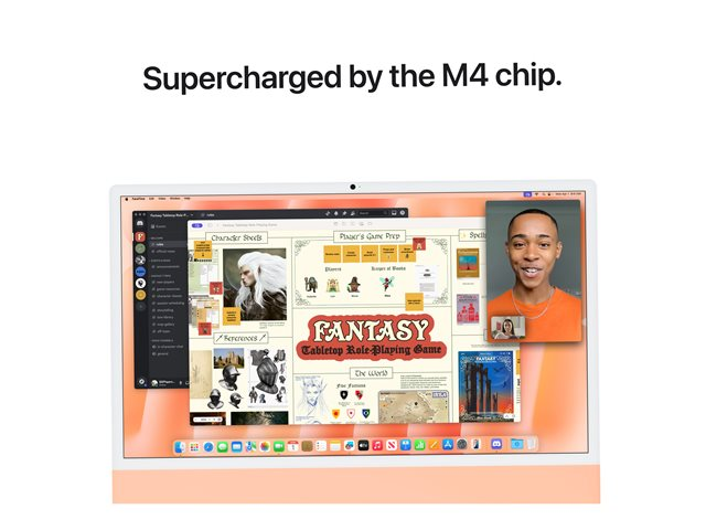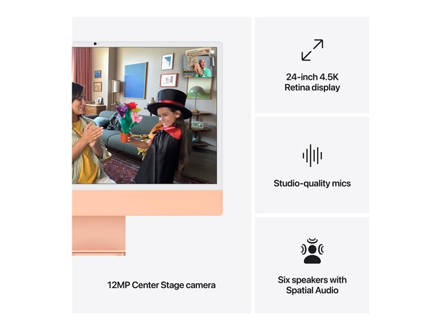 IMac. Den ultimative alt-i-en-skrivebord. Bygget til Apple Intelligence [1]. Med M4-chippen føles browsing og multitasking på tværs af apps hurtigere. Med en fantastisk 24" 4,5K Retina-skærm [2] i et ikonisk design og avanceret kamera, mikrofoner og højttalere er iMac genial til både arbejde og fritid.