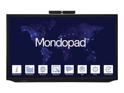 Mondopad is an elegant all-in-one touchscreen system for efficient face-to-face collaboration with people anywhere. Video conference, whiteboard, share data, and more - you'll never want to meet without it. Includes 55'' touch display, power cord, remote, Stylus, HDMI cable, USB cable and WiFi adapter, wireless mouse, wireless keyboard, camera with microphone array and documentation.