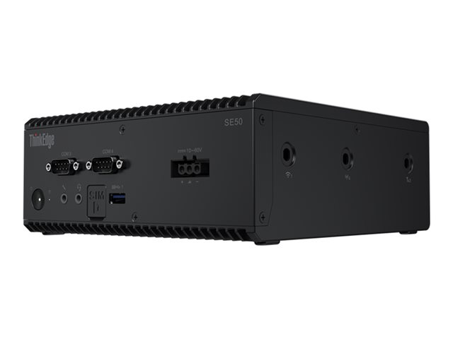 The ThinkEdge SE50 is designed for versatile applications that require higher analytics and data processing at the edge. The embedded edge compute device includes a powerful processor for industrial computing and huge memory. End users can deploy the ThinkEdge SE50 to aggregate and analyze real-time data from distributed IoT devices. This smart edge device can filter and forward IoT data across the WAN to the cloud or data center.