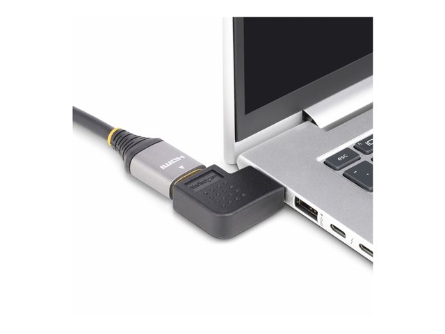The StarTech.com Right Angle HDMI 2.0 Adapter is a versatile solution designed to enhance your home entertainment system. This 90-degree HDMI port saver is equipped with features that ensure high-quality audio and video output, including 4K60Hz support, HDR10, and 7.1 channel Surround Sound. Its durable construction, with a tear-resistant and wear-resistant PVC jacket, ensures a lifespan of 10,000 insertions, making it a reliable choice for those who frequently connect and disconnect their devices. The adapter's gold-plated connectors provide a stable and reliable connection, reducing the risk of signal loss. With its right-angled design, it's perfect for tight spaces, helping to prevent cable strain and port damage. Whether you're looking to connect your TV, gaming console, or any other HDMI-enabled device, this adapter offers the functionality and durability needed for a seamless entertainment experience.