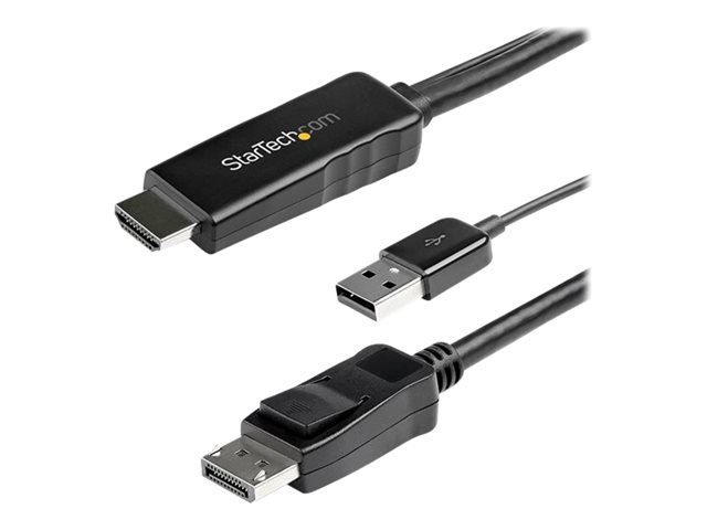 This 2 m (6 ft.) HDMI to DisplayPort cable with USB power lets you connect an HDMI video source, such as your laptop, desktop, Blu-ray player, or camera, to a DisplayPort monitor or projector without the need for additional video cables. The adapter cable features male connectors enabling you to connect your video source directly to the display, with no need for additional adapters or cables.