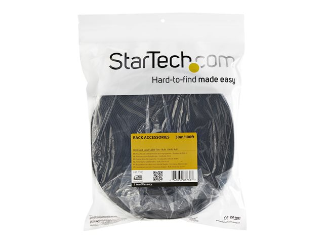 StarTech.com 100ft. Hook and Loop Roll - Cut-to-Size Reusable Cable Ties - Bulk Industrial Wire Fastener Tape - Adjustable Fabric Wraps - Black (HKLP100) - Kabelbinderrulle - 30.4 m - for P/N: CMHOOK1U, HKLP100BL, HKLP100GN, HKLP100RD, HKLP100YW