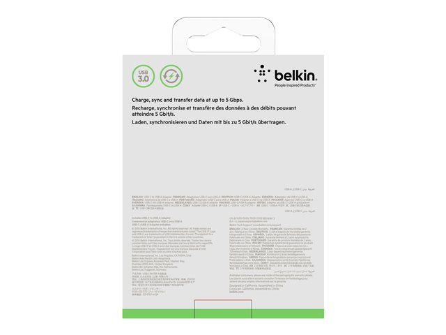 Belkin 3.0 USB-C to USB-A Adapter - USB adapter - USB-C (han) omvendelig til USB Type A (hun) - USB 3.0 - 3 A - sort