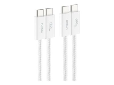 Belkin BoostCharge - USB-kabel - 24 pin USB-C (han) til 24 pin USB-C (han) - 1.5 m - Fast Charging op til 60 W - hvid (pakke med 2)
