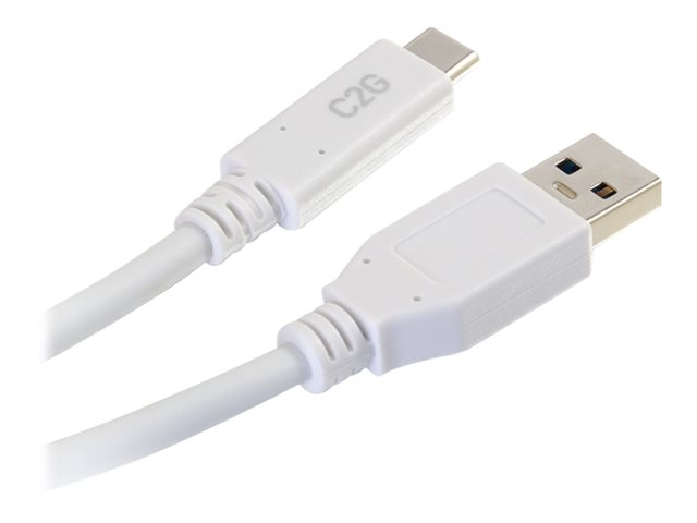 C2G 10ft USB C 3.0 to USB Cable - USB C to USB A - M/M - USB-kabel - USB Type A (han) til USB-C (han) - USB 3.1 - 30 V - 3 A - 3.05 cm - hvid