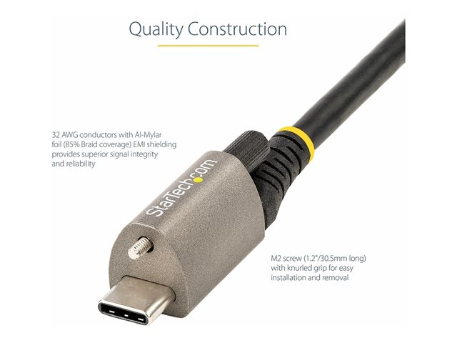 StarTech.com 20in 50cm Top Screw Locking USB C Cable 10Gbps, USB 3.1/3.2 Gen 2 Type-C Cable, 100W (5A) Power Delivery Charging, DP Alt Mode, Single Screw Lock, USB-C to C Cord - Thunderbolt 3 Compatible (USB31CCTLKV50CM) - USB-kabel - USB-C (han) lige/låsende til USB-C (han) lige - USB 3.2 Gen 2 / DisplayPort 1.4 /Thunderbolt 3 - 50 cm - 8K support - grå, sort USB31CCTLKV50CM