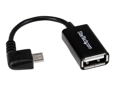 StarTech.com 5in Right Angle Micro USB to USB OTG Host Adapter M/F - Angled Micro USB Male to USB A Female On-The-Go Host Cable Adapter (UUSBOTGRA) - USB-adapter - USB (hun) til Micro-USB Type B (han) - USB 2.0 OTG - 12.7 cm - vinkelret stik - sort UUSBOTGRA