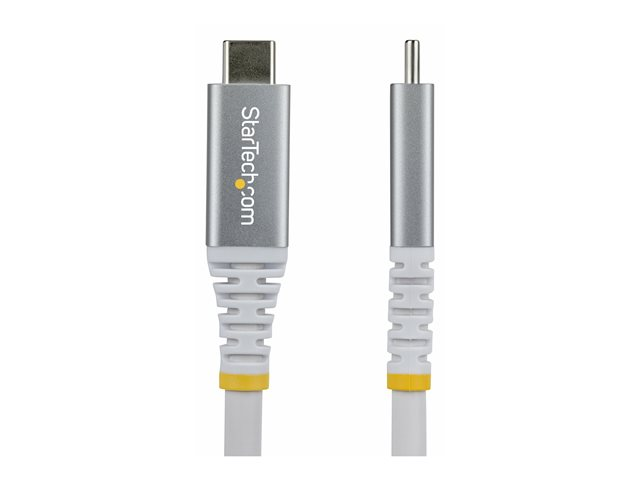 The StarTech.com CC3M20GUSB4CXW is a USB-C cable designed to enhance connectivity with capabilities such as USB4, Thunderbolt 3, and Thunderbolt 4, ensuring seamless data transfer and high-performance video output. With a data rate of up to 20 Gbps and HDR10 support, users can enjoy visuals and responsive performance for demanding applications. Additionally, with a power delivery of up to 60 watts, it meets various charging needs while offering flexibility due to its rugged and flexible design. Engineered with premium materials, this cable features nickel-plated connectors and an EMI protection system, contributing to durability and reliable data transfer. The thermoplastic elastomer (TPE) jacket ensures longevity, suitable for a range of environments. The inclusion of an e-marker chip further enhances functionality, providing users with a dependable connection for all their USB-C needs.