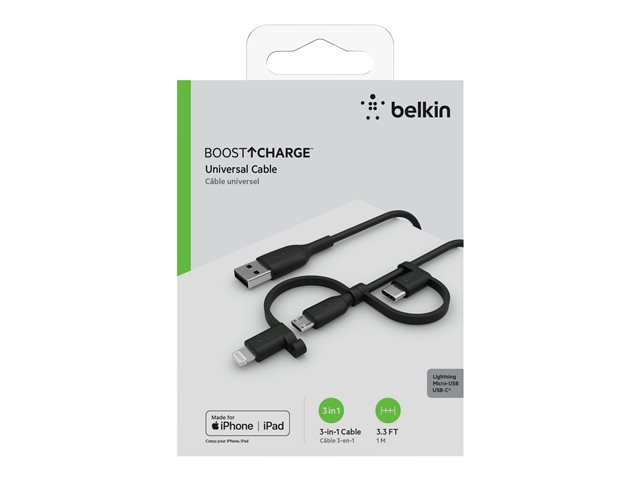 Belkin BoostCharge Universal - USB-kabel - USB han til Micro-USB Type B, Lightning, USB-C han - 1 m CAC001BT1MBK