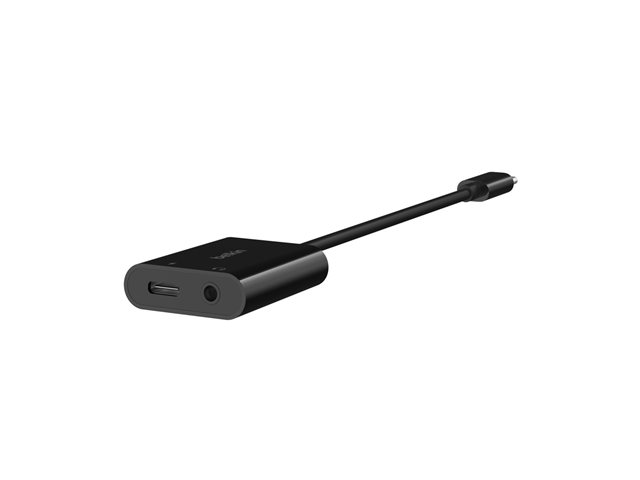 Belkin RockStar - USB-C til hovedtelefon-jackstik/opladningsadapter - USB-C han til ministik, USB-C hun - 19.6 cm - USB Power Delivery (60W) NPA004BTBK