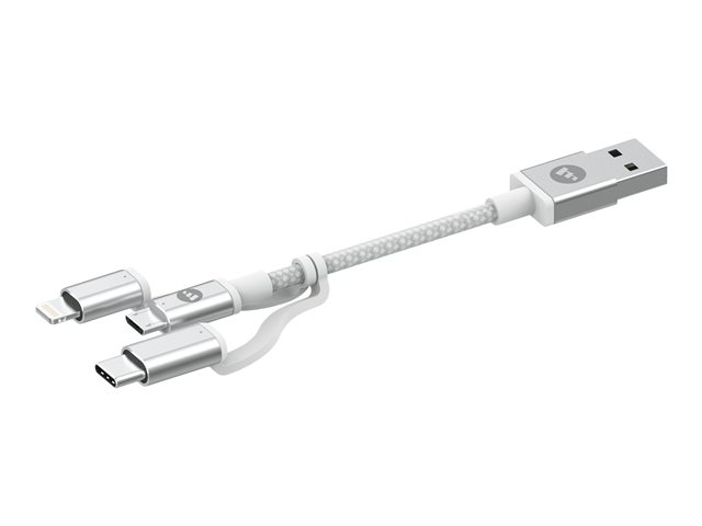 ZAGG - Opladning/datakabel - USB han til Micro-USB Type B, Lightning, USB-C han - 1 m - hvid