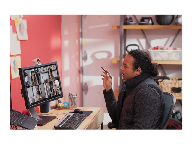 | Egenskaber | ePTZ, privatlivslukker, Low Light Compensation (LLC), justerbar skærmklemme, LED-indikator, 80° diagonalt synsfelt, Webcam Support (UVC), 50 Hz til 16 kHz mikrofonfrekvensrespons |