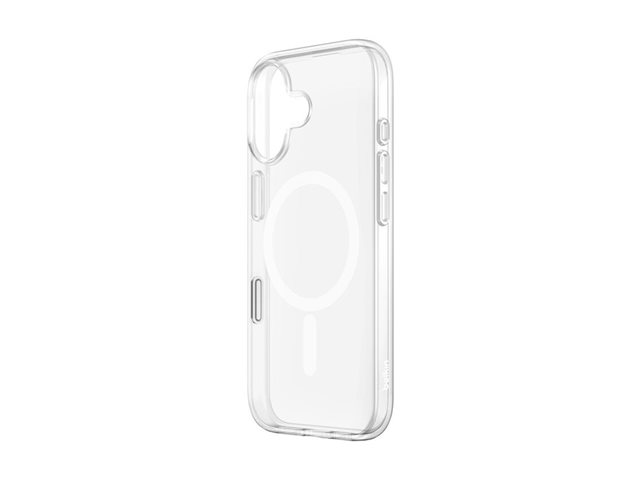 The Belkin SheerForce Clear Series protective cover is designed for cell phones, providing a reliable shield against drops, scratches, and yellowing. Made from recycled materials, this eco-friendly back cover combines sustainability with functionality, ensuring both style and protection. Featuring wireless charging support and a raised bezel, it offers seamless usability while keeping the device secure. The anti-slip texture enhances grip, preventing accidental slips, while compatibility with camera control ensures ease of use when taking photos.