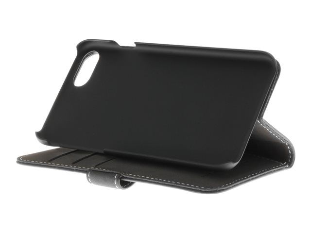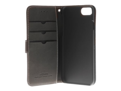 Insmat Exclusive Flip Case - Flipomslag til mobiltelefon - ægte læder - sort - for Apple iPhone 6, 6s, 8, SE (2. generation)