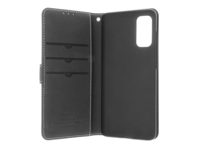 Insmat Exclusive Flip Case - Flipomslag til mobiltelefon - ægte læder, papir, karton, aluminumfolie - sort - for Samsung Galaxy S20, S20 5G 650-2843