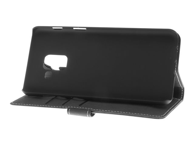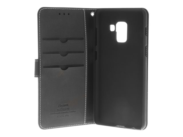 Insmat Exclusive Flip Case - Flipomslag til mobiltelefon - ægte læder - sort - for Samsung Galaxy A8 (2018)