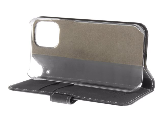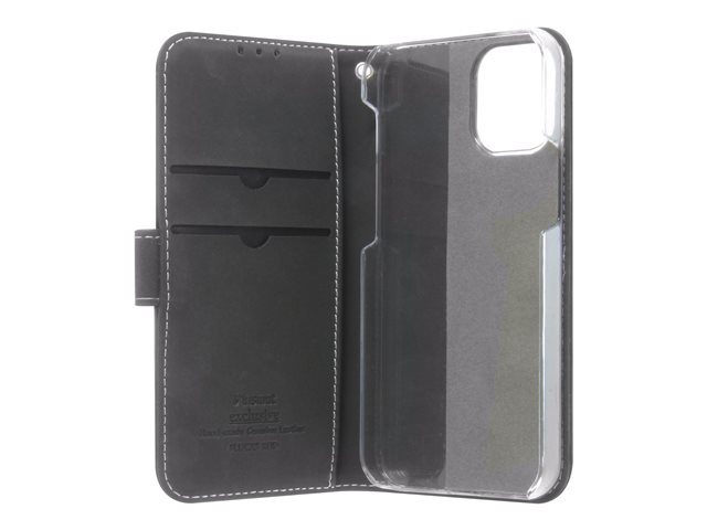 Insmat Exclusive Flip Case - Flipomslag til mobiltelefon - ægte læder, papir, karton, polykarbonat, aluminumfolie - sort - for Apple iPhone 12 mini 650-2878