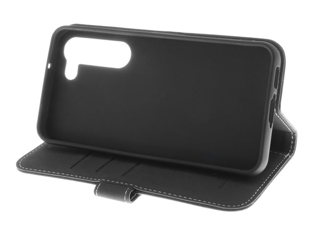 Insmat Exclusive - Flipomslag til mobiltelefon - ægte læder, papir, polyurethan, karton, bomuld, aluminumfolie, bronze, termoplastisk polyuretan (TPU) - sort - for Samsung Galaxy S23 650-3133