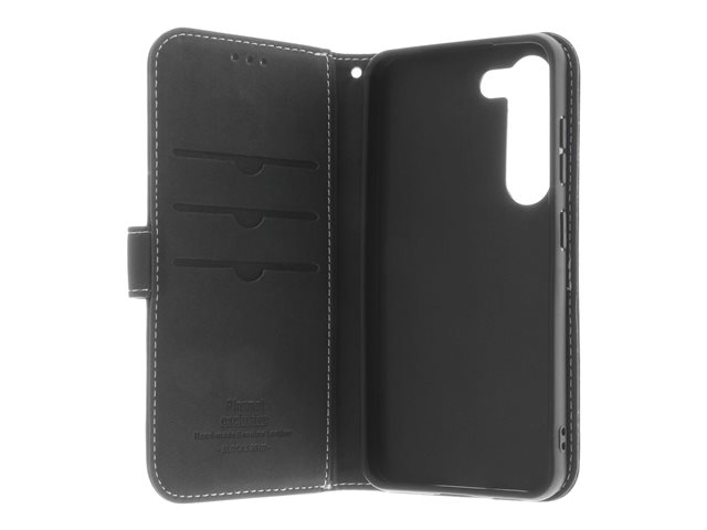 Insmat Exclusive - Flipomslag til mobiltelefon - ægte læder, papir, polyurethan, karton, bomuld, aluminumfolie, bronze, termoplastisk polyuretan (TPU) - sort - for Samsung Galaxy S23+ 650-3135
