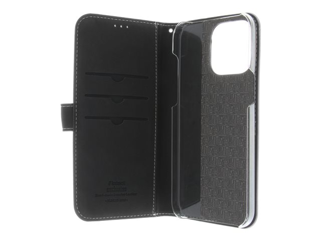 Insmat Exclusive - Flipomslag til mobiltelefon - ægte læder, polykarbonat, karton+papir+aluminiumsfolie, bomuldssyninger - hvid - for Apple iPhone 15 Pro Max 650-3191