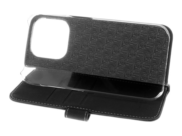 Insmat Exclusive - Flipomslag til mobiltelefon - ægte læder, karton+papir+aluminiumsfolie - sort - for Apple iPhone 15 Pro 650-3186