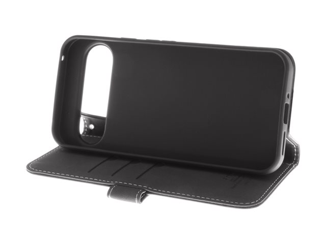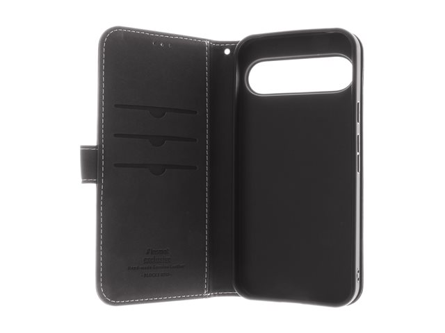 Insmat Exclusive - Flipomslag til mobiltelefon - ægte læder, karton+papir+aluminiumsfolie, polycarbonat (PC) - sort - for Google Pixel 9 Pro XL 650-3275