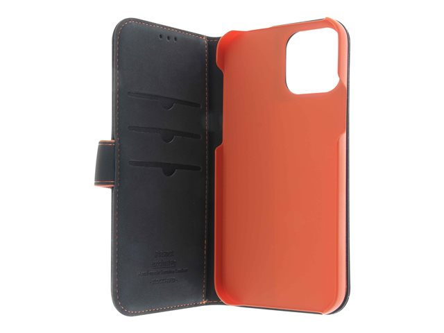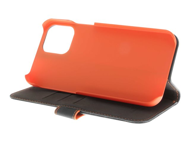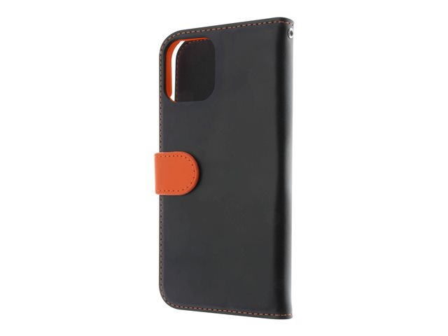 Insmat Exclusive - Flipomslag til mobiltelefon - læder, karton+papir+aluminiumsfolie - sort/orange - for Apple iPhone 11