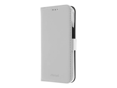 Insmat Exclusive - Flipomslag til mobiltelefon - læder, polykarbonat, karton+papir+aluminiumsfolie, bomuldssyninger - hvid - for Apple iPhone 14 Pro