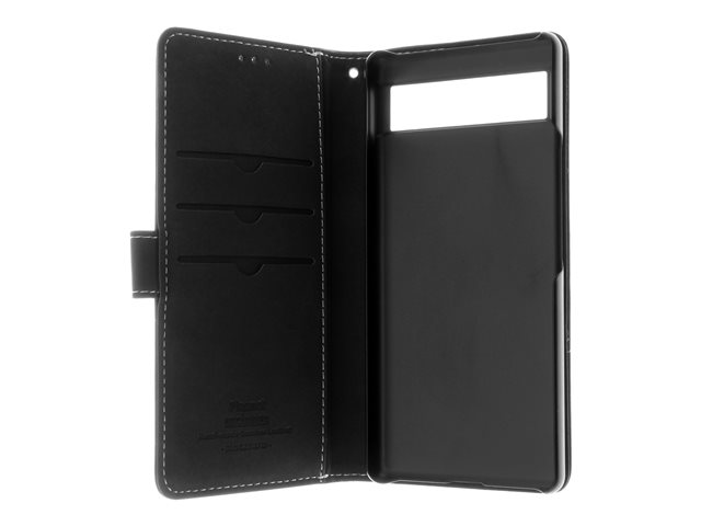 Insmat Exclusive - Flipomslag til mobiltelefon - læder, karton+papir+aluminiumsfolie, polykarbonat - sort - for Google Pixel 6a 650-3208