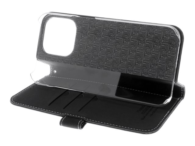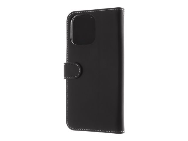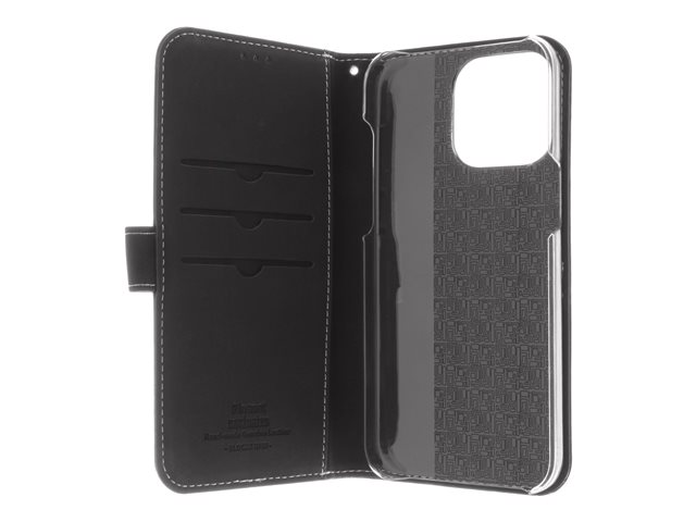 Insmat Exclusive - Flipomslag til mobiltelefon - læder, karton+papir+aluminiumsfolie, polycarbonat (PC) - sort - for Apple iPhone 15 Pro Max 650-3187