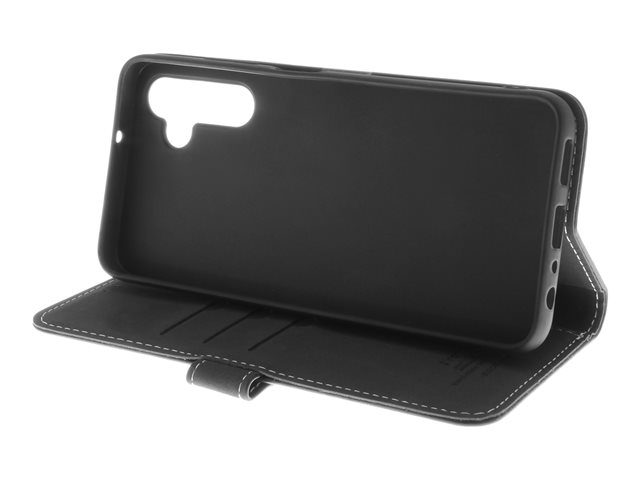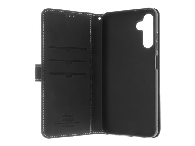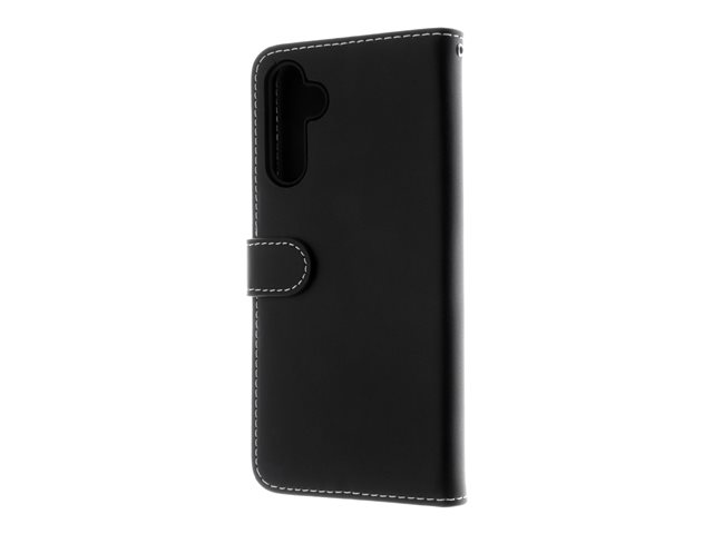 Insmat Exclusive - Flipomslag til mobiltelefon - læder, karton+papir+aluminiumsfolie, termoplastisk polyuretan (TPU) dock, bomuldssyninger - sort - for Samsung Galaxy A25 650-3217