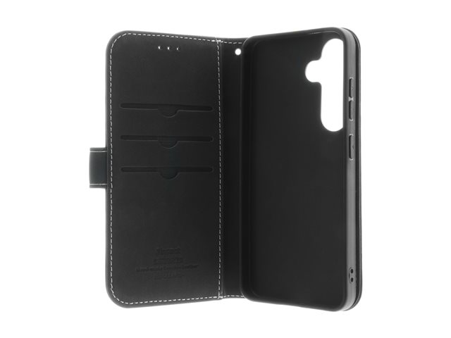 Insmat Exclusive - Flipomslag til mobiltelefon - læder, karton+papir+aluminiumsfolie, termoplastisk polyuretan (TPU) dock, bomuldssyninger - sort - for Samsung Galaxy S24+ 650-3220