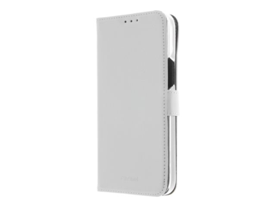 Insmat Exclusive - Flipomslag til mobiltelefon - papir, karton, læder, polykarbonat, bomuld, aluminumfolie, bronze - hvid - for Apple iPhone 12, 12 Pro 650-2893