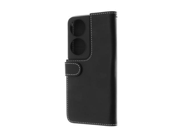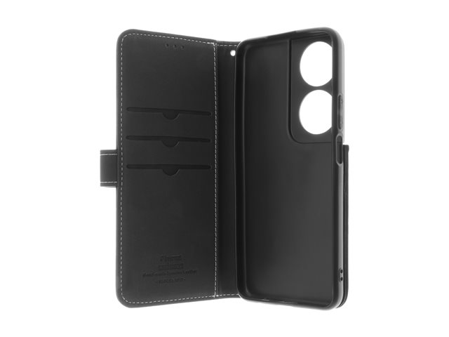 Insmat - Flipomslag til mobiltelefon - ægte læder, bomuldssyninger, karton+papir+aluminiumsfolie, termoplastisk polyuretan (TPU) - sort - for Honor X7A 650-3240