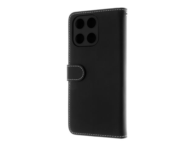 Insmat - Flipomslag til mobiltelefon - læder, polykarbonat, karton+papir+aluminiumsfolie, bomuldssyninger - sort - for Honor X6a 650-3212