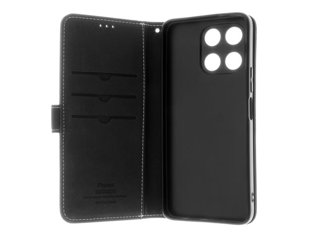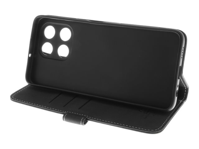 Insmat - Flipomslag til mobiltelefon - læder, polykarbonat, karton+papir+aluminiumsfolie, bomuldssyninger - sort - for Honor X6a