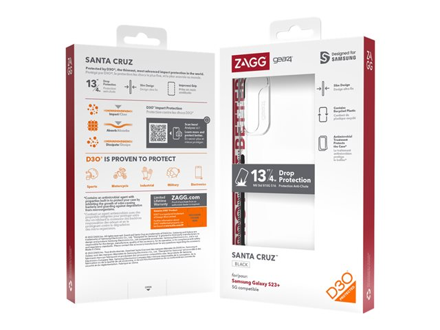Prisbelønnet slagbeskyttelse i et slankt, stilfuldt design, der viser beskyttelsesmaterialet frem. Det smukke Santa Cruz-etui giver faldbeskyttelse på op til fire meter (13 fod). Det er lavet med D3O-teknologi for uovertruffen slagbeskyttelse og har egenskaber, der modvirker gulning, så det forbliver lige så gennemsigtig, som da du købte det. D3O - som er den samme teknologi, der anvendes af militæret og professionelle atleter - er nøglekomponenten i ZAGG's fantastiske telefonbeskyttelse. D3O er et bøjeligt, fleksibelt materiale, der hærder ved slag, afleder stød og beskytter din enhed. Etuiets slanke design gør, at din enhed nemt passer i din lomme og samtidig ser slank og stilfuld ud i hånden. Santa Cruz Snap indeholder RepelFlex, som er en antimikrobiel belægning med egenskaber, der er udviklet til at beskytte din etuibelægning ved at hæmme væksten af lugtfremkaldende bakterier og beskytte mod nedbrydning fra mikroorganismer. Etuiet er også 5G-kompatibelt og delvist lavet af genbrugsplast, der består af genvundet affald eller industrielt overskudsmateriale. Santa Cruz er kompatibel med de fleste trådløse opladere.