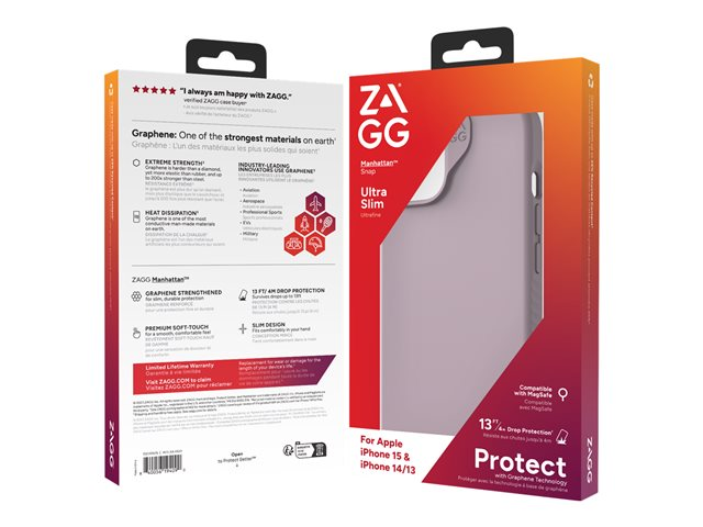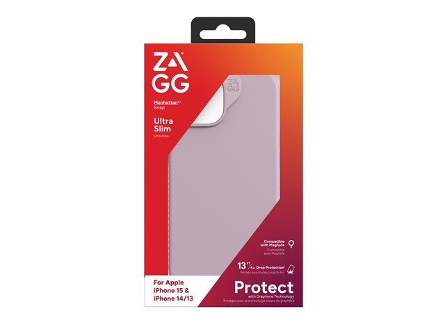 ZAGG Manhattan Snap - Bagsidecover til mobiltelefon - MagSafe-kompatibilitet - silicone - lavendelfarvet - for Apple iPhone 13, 14, 15
