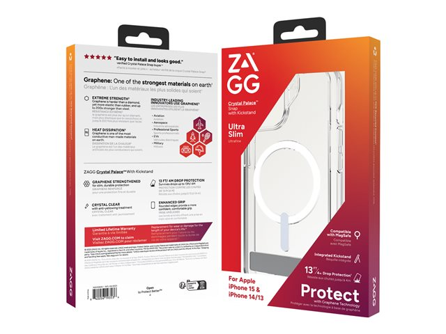 Zagg Crystal Palace - Bagsidecover til mobiltelefon - MagSafe-kompatibilitet - klar - for Apple iPhone 13, 14, 15 702312620
