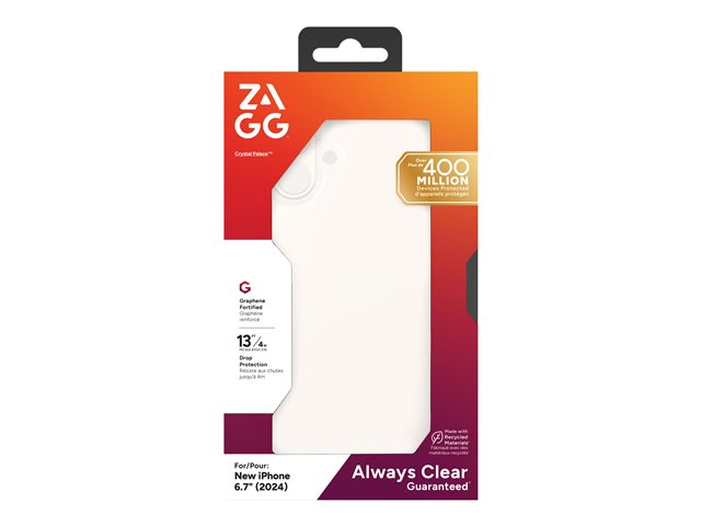 Zagg Crystal Palace-beskyttelsescoveret tilbyder en kombination af holdbarhed og stil til mobiltelefoner. Dette bagcover er udviklet med materialer som grafen og giver beskyttelse mod fald, ridser og varme, samtidig med at det understøtter trådløs opladning. Designet med indpakkede og strukturerede kanter forbedrer det grebet og opretholder et slankt, støbt udseende.