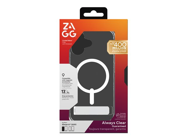 Zagg Crystal Palace Snap - Bagsidecover til mobiltelefon - støtteben - MagSafe-kompatibilitet - Krystalklar - for Apple iPhone 17 702318860