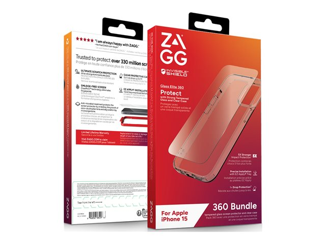 Zagg InvisibleShield Glass Elite 360 - Beskyttende kasse til mobiltelefon - glas, polykarbonat - klar - for Apple iPhone 15 200511804