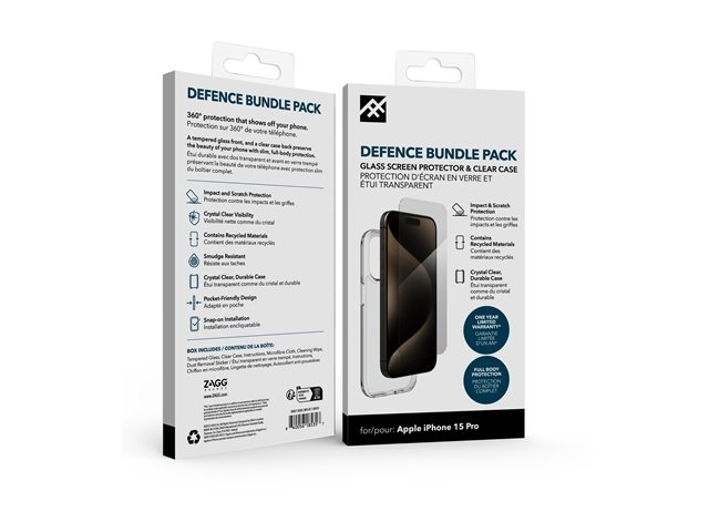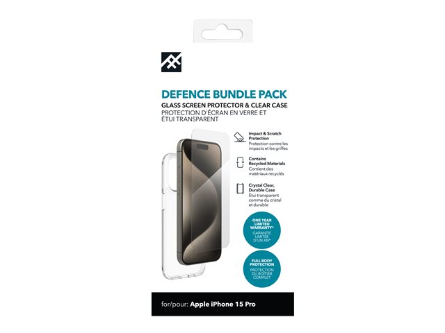 iFrogz Defence - Bagsidecover til mobiltelefon - klar - med skærmbeskytter - for Apple iPhone 15 Pro