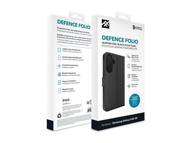 ZAGG iFrogz Defence-bæretasken er en beskyttende løsning til mobiltelefoner, der er designet med stil og funktionalitet for øje. Dette slanke og lette flipcover har kortlommer for ekstra bekvemmelighed, så du kan opbevare vigtige ting sammen med din enhed. Det er fremstillet i et læderlignende materiale, der tilføjer et strejf af elegance og samtidig giver pålidelig beskyttelse. Folio-coveret er designet med magnetisk lukning og åbning i siden, hvilket gør det praktisk og ideelt til daglig brug. Derudover er det fremstillet af genanvendte materialer, hvilket gør det til et miljøvenligt valg uden at gå på kompromis med kvaliteten.