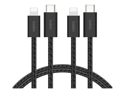 Belkin BoostCharge - Lightning-kabel - 24 pin USB-C han til Lightning han - 1.5 m - MFI Certified - sort - Fast Charging (pakke med 2)