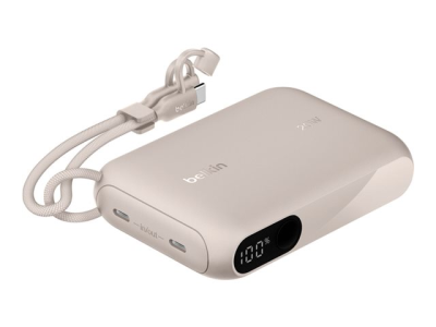 Belkin BoostCharge - Powerbank - med display - 10000 mAh - 20 Watt - PD - 2 output-stikforbindelser (USB-C) - på kabel: USB-C - sand
