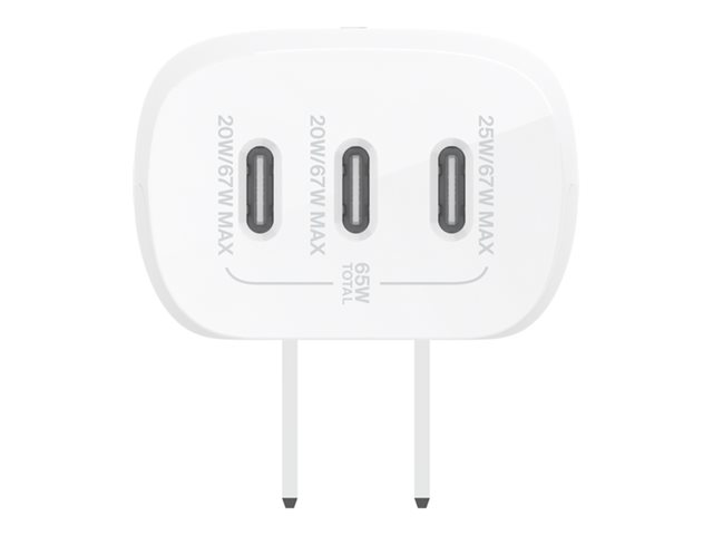Belkin BoostCharge - Strømforsyningsadapter - PPS-teknologi - 67 Watt - 3.25 A - PD 3.0, Power Delivery 3.1 - 3 output-stikforbindelser (USB-C) - hvid WCC002VF2MWH-B6