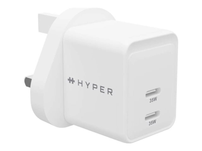 HyperJuice - Strømforsyningsadapter - GaN - 35 Watt - QC 3.0, Power Delivery 3.0 + PPS - 2 output-stikforbindelser (USB-C) - hvid - United Kingdom