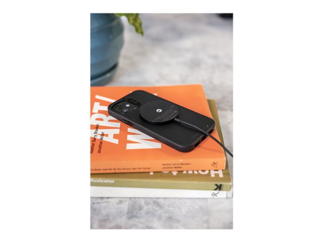 - The magnetic array on the snap+ wireless charger works with MagSafe compatible devices.