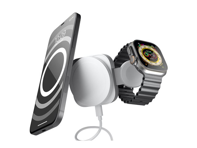 ZENS 2-i-1 MagSafe + Watch trådløs opladningsplade er en alsidig løsning til opladning af dine enheder. Den har plads til både mobiltelefoner og smartwatches og har en udgangseffekt på 20 W for effektiv opladning. Med en indbygget støttefod giver den nem adgang til enhederne, mens de oplades. Det flettede USB-C til USB-C-kabel sikrer holdbarhed og muliggør samtidig opladning af op til 2 enheder uden at gå på kompromis med ydeevnen. Denne opladningsplade er kompatibel med MagSafe, hvilket giver en sikker og effektiv opladningsoplevelse.